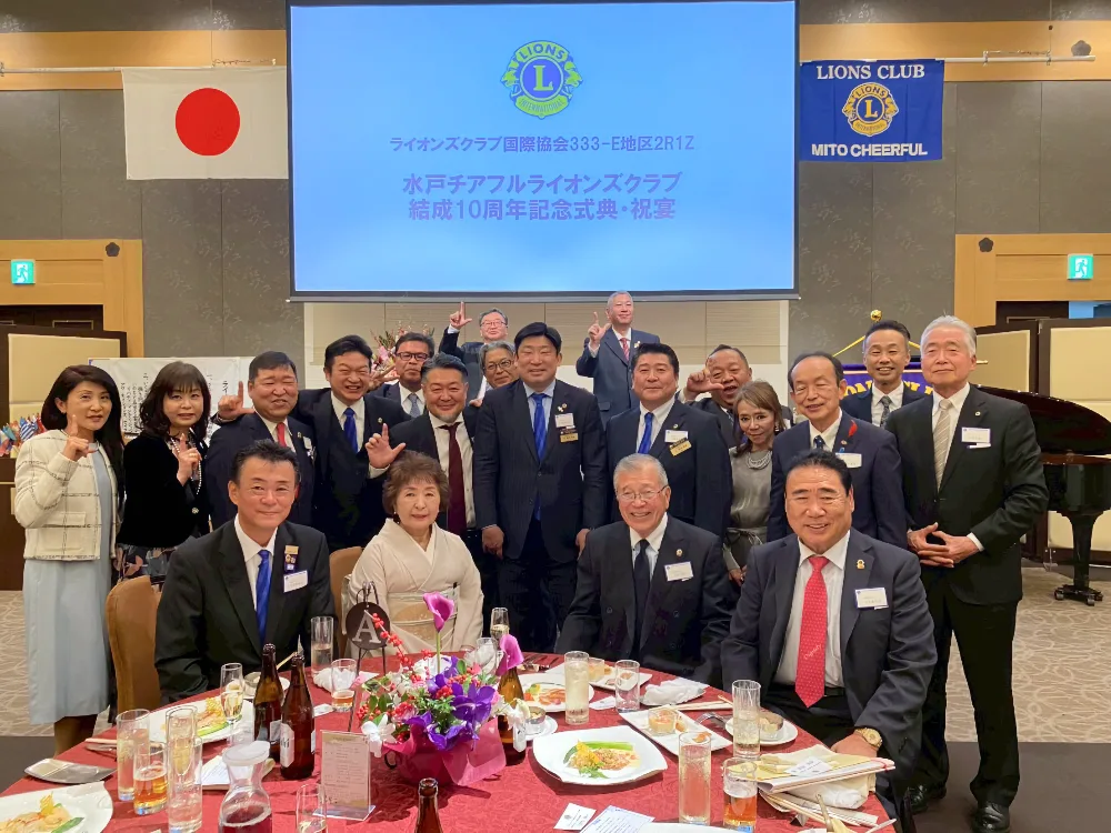 2025年11月29日に開催された水戸チアフルライオンズクラブ結成10周年記念式典に出席いたしました。 式典では、同クラブの10年間にわたる地域社会への貢献と会員の絆を振り返り、今後の更なる発展に向けた決意が示されました。参加者一同が「We Serve」の精神を改めて確認し、奉仕活動の意義を共有する場となりました。